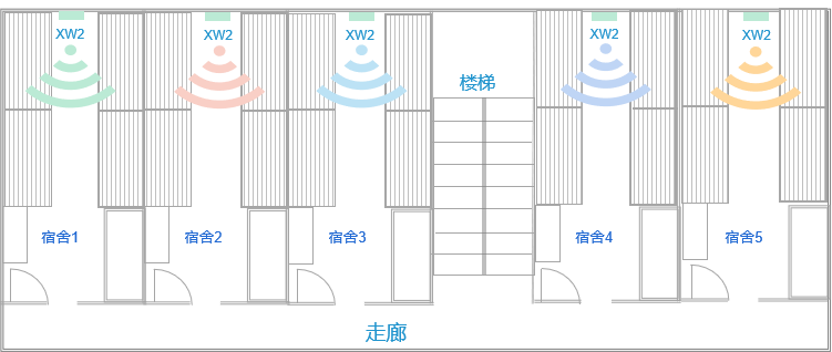 在传统方案中,“单AP双房间”的方式部署会出现相邻宿舍信号较差、上网速率低的现象。为了让轻工学院学子们有更优质的网络体验,我们给予了“单AP单房间”的部署方式,每个学生宿舍均单独安装1台XW2墙面AP,大大提高了网络的“可靠性”。